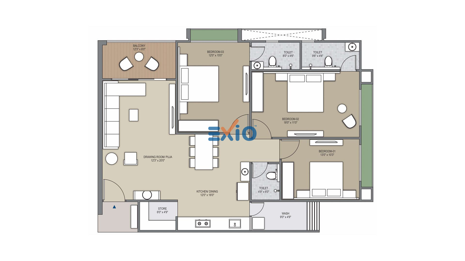 Each 3 BHK apartment is around 2,430 sq. ft., offering a spacious and practical layout for daily living. The project also includes 2 basement levels for parking. Located in Thaltej, Ahmedabad, Sky 100 is suitable for buyers looking for 3 BHK flats in Thaltej, residential projects in Ahmedabad, and premium homes in a well-connected area.