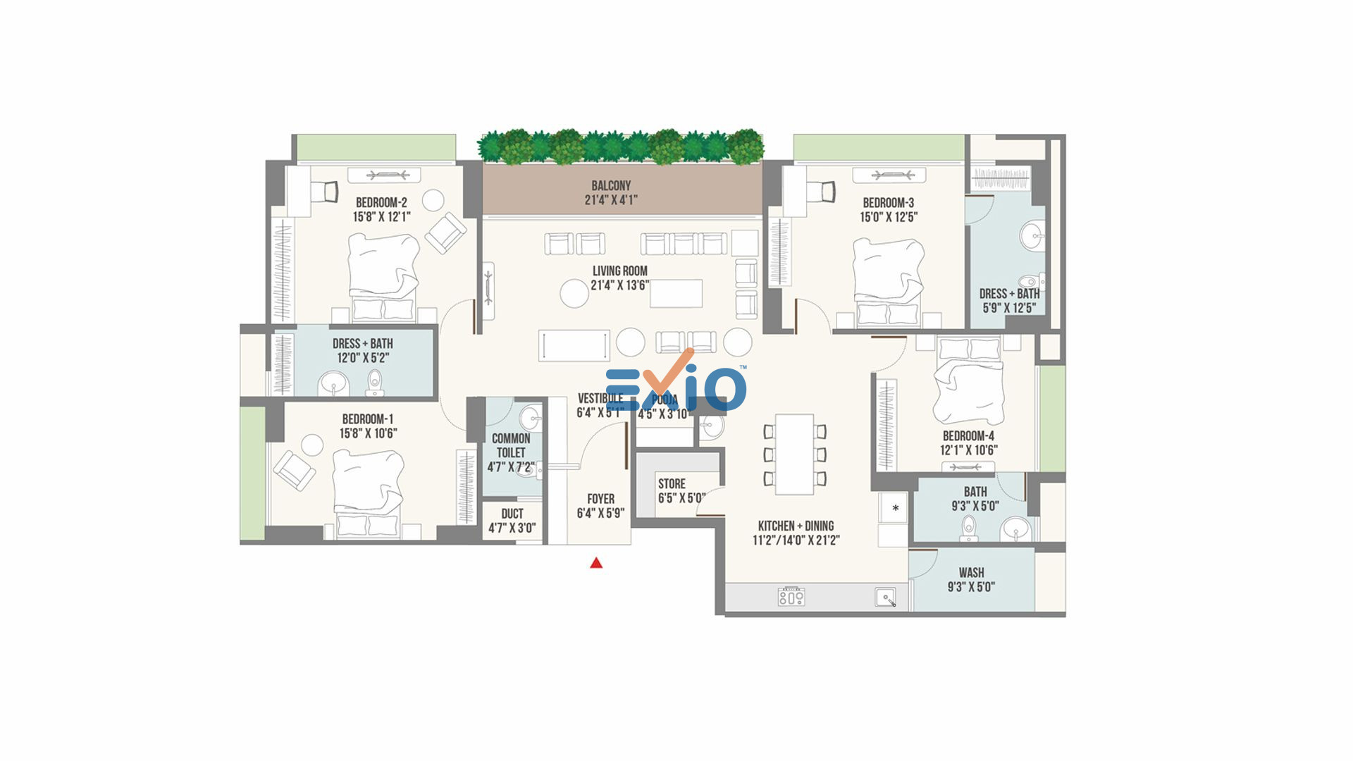 4 BHK Spacious Living